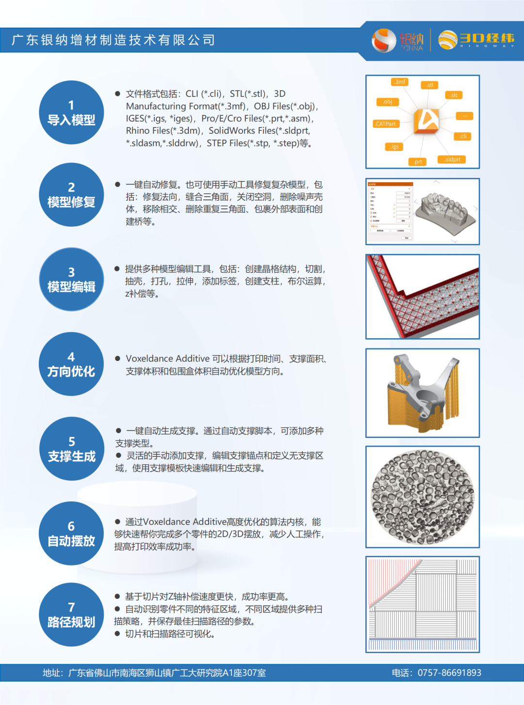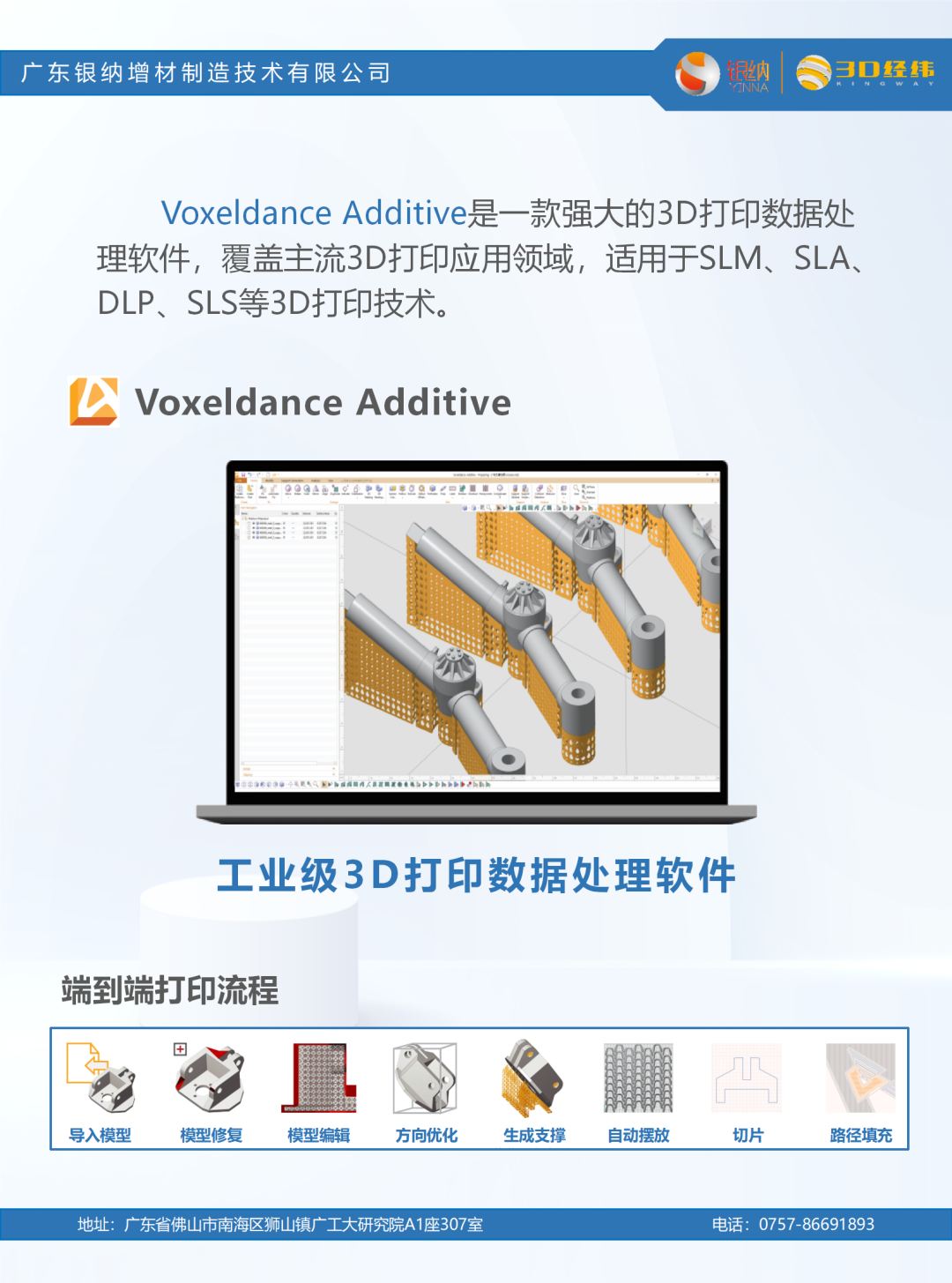 廣東銀納SLA光固化成型設(shè)備采用漫格科技VoxelDance Additive作為數(shù)據(jù)準(zhǔn)備軟件,該軟件具備了3D打印數(shù)據(jù)前處理所需要的所有功能,并能很好地解決模型修復(fù)、支撐的創(chuàng)建等問題,得到了用戶的高度贊譽。