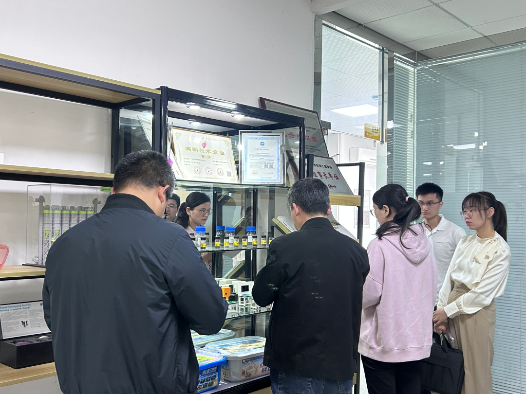 銀納銷(xiāo)售經(jīng)理帶領(lǐng)浙江省衢州第二中等專(zhuān)業(yè)參觀(guān)銀納的生產(chǎn)研發(fā)基地、校企合作成果、行業(yè)應(yīng)用案例、產(chǎn)品與裝備等。